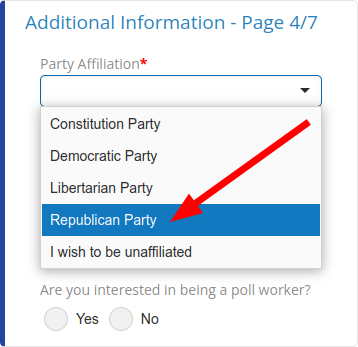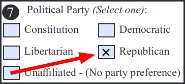 Remember, to vote for Ammon Bundy for Governor, you must register with the State of Idaho as a Republican, as shown in the examples below...